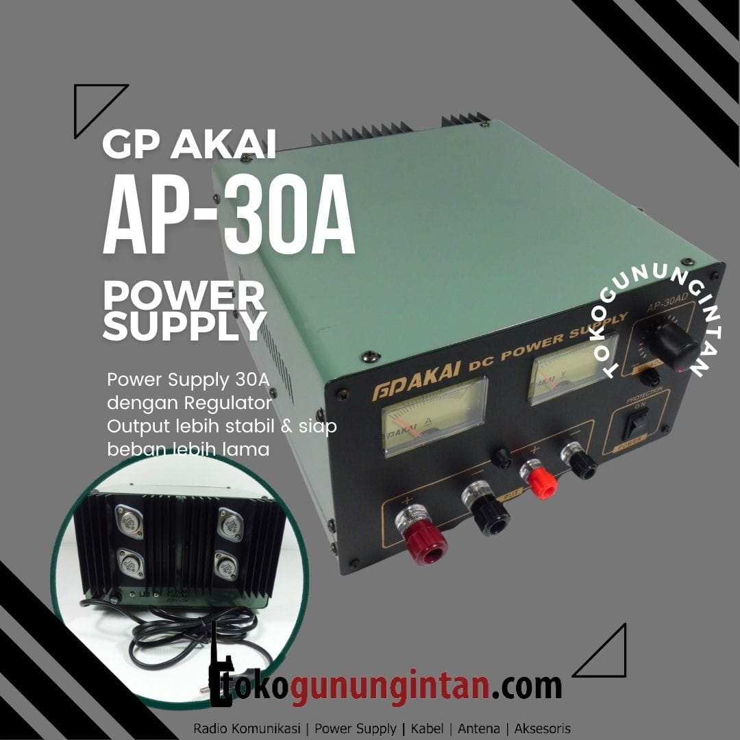 GP Akai AP-30A digunakan untuk menyediakan daya listrik yang stabil pada berbagai perangkat komunikasi, terutama dalam penggunaan operasional yang membutuhkan performa konsisten.